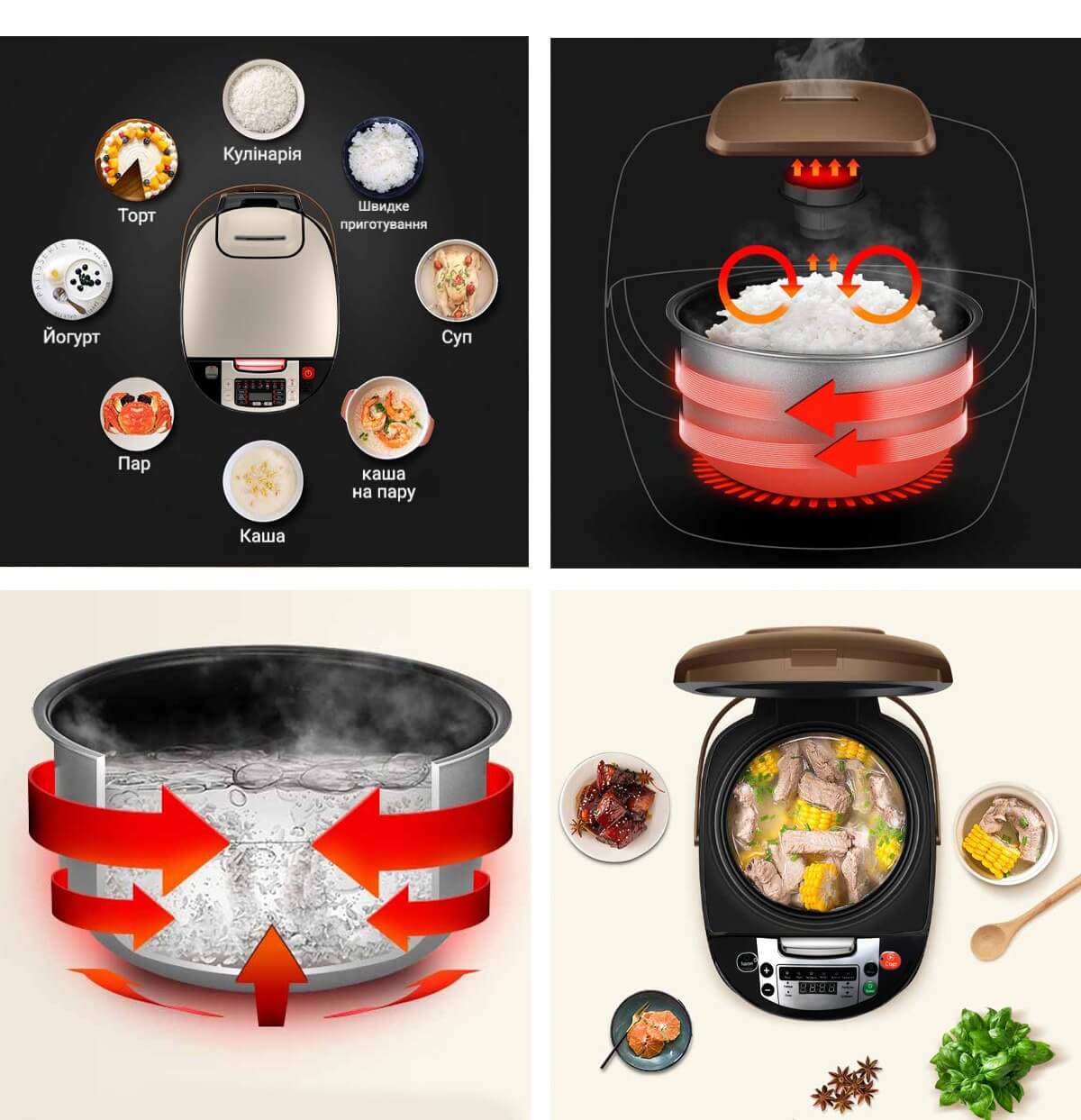 Варто викласти продукти в чашу, встановити режим, і страва готується. А скільки часу лишається для себе! Можна з дітьми погуляти, сходити на пробіжку, побалакати з друзями за чашкою чаю, не розриваючись між миттям та плитою.